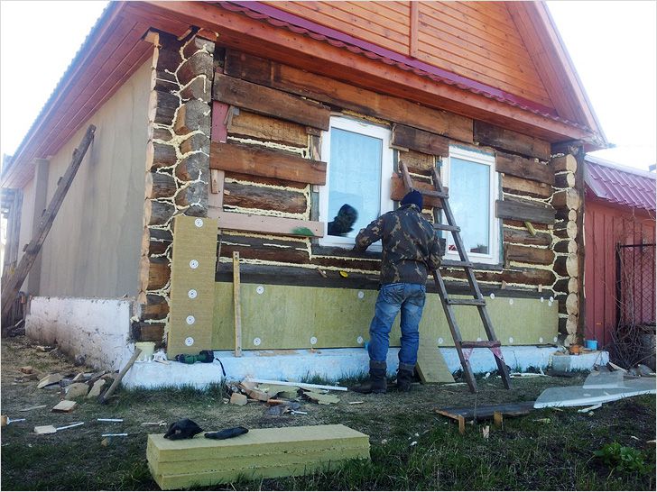Нанесите герметик для бревен на все стыки и трещины между бревнами. Это предотвратит проникновение воды и сохранит тепло.