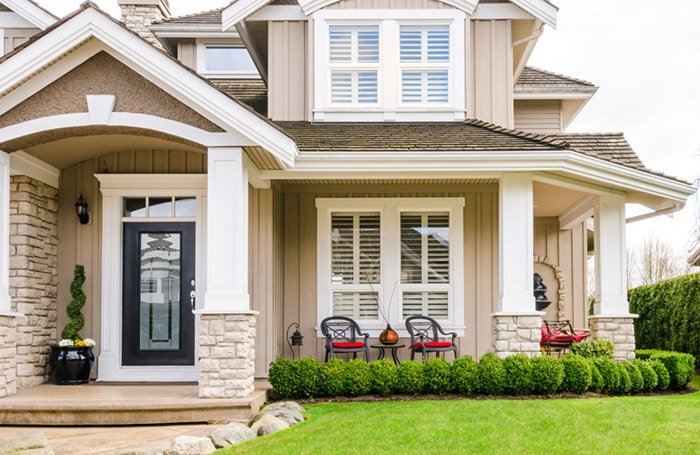 Традиционные дома хорошо смотрятся с естественными цветами, такими как бежевый, серый или коричневый.